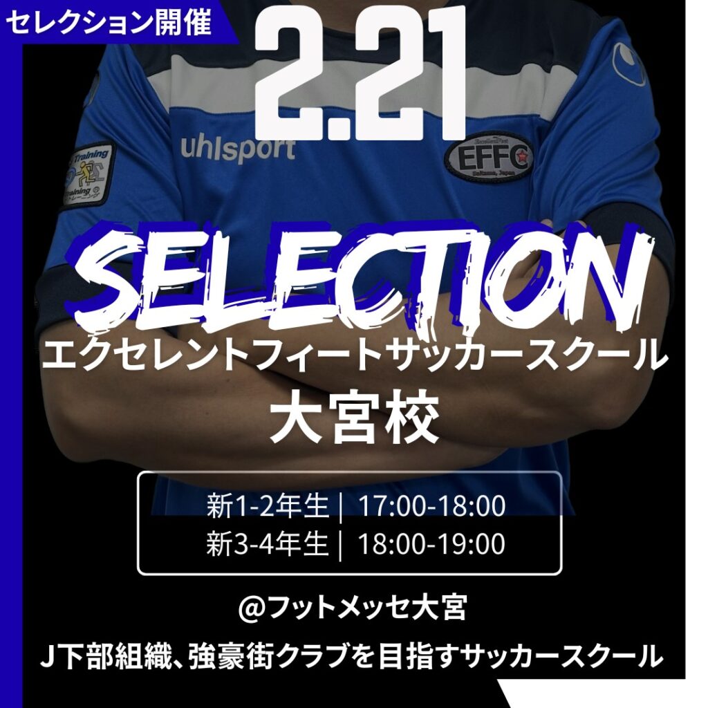 EFSS大宮校 セレクションのお知らせEFSS|セレクション2026 ⚽エクセレントフィートサッカースクールからのお知らせ⚽ 🔵🟢大宮校🟢🔵 2026年4月入会者向けセレクショ…