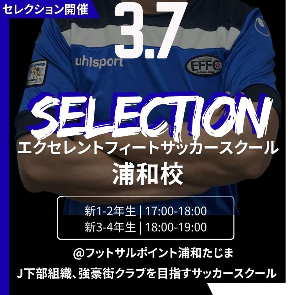 EFSS浦和校セレクションのお知らせEFSS|セレクション2026 ⚽エクセレントフィートサッカースクールからのお知らせ⚽ 🔵🟢浦和校🟢🔵 2026年4月入会者向けセレクション…